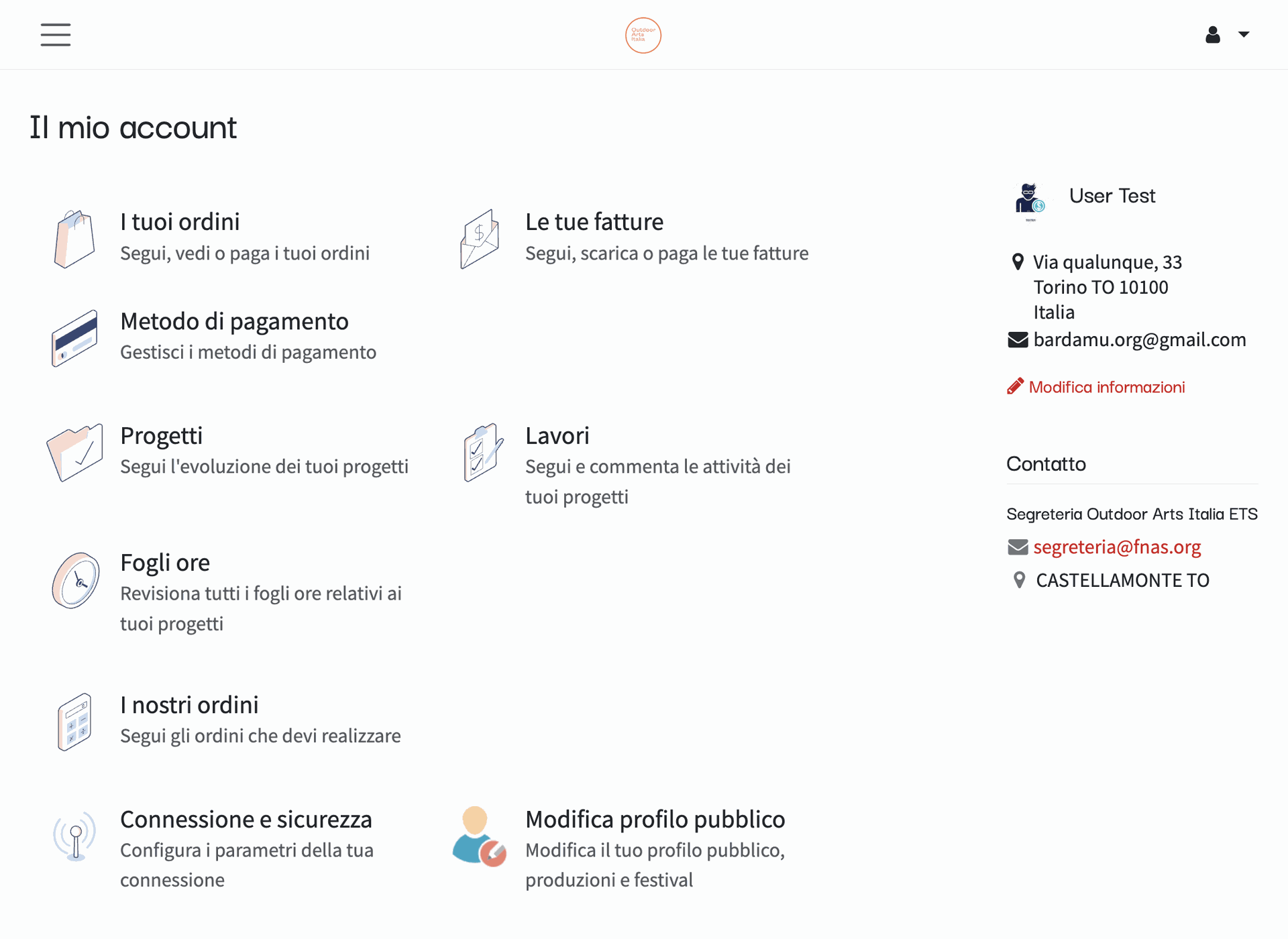 Il tuo profilo personale è legato a te come persona ed l'interfaccia con Outdoor Arts Italia ETS. A questo profilo, qualora tu abbia aderito all'ente, verranno inviate le informazioni per la partecipazione sociale alla vita dell'ente.