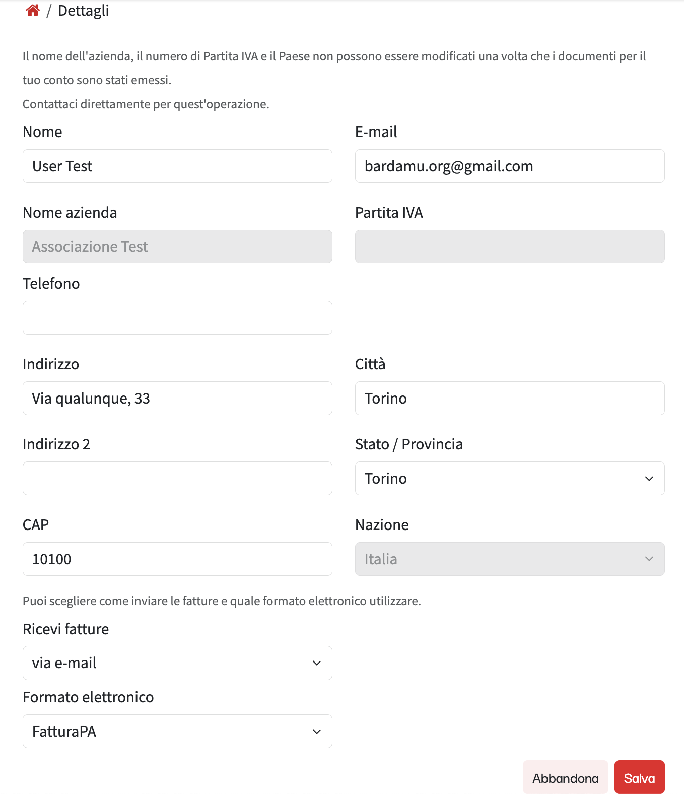 Ricorda sempre di cliccare "Salva" o "Aggiorna profilo" dopo ogni modifica per rendere effettive le tue modifiche.