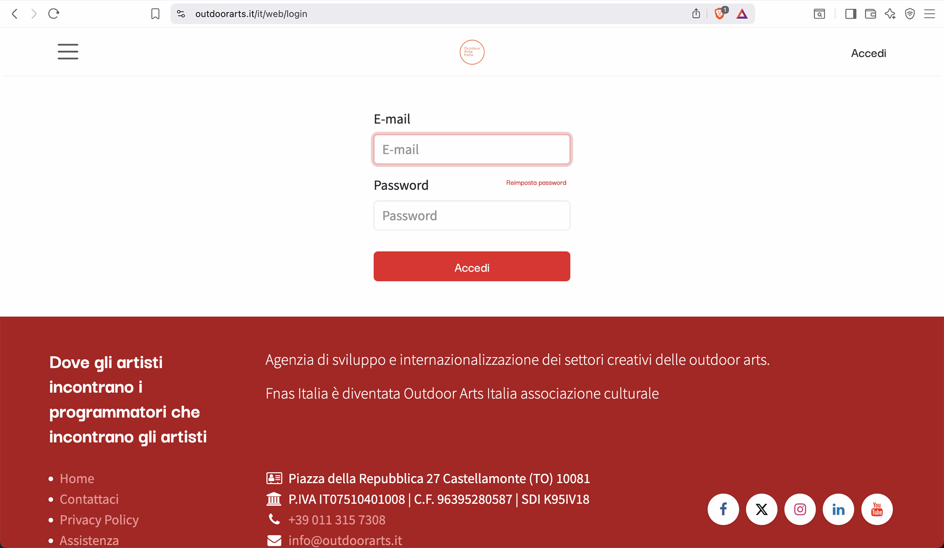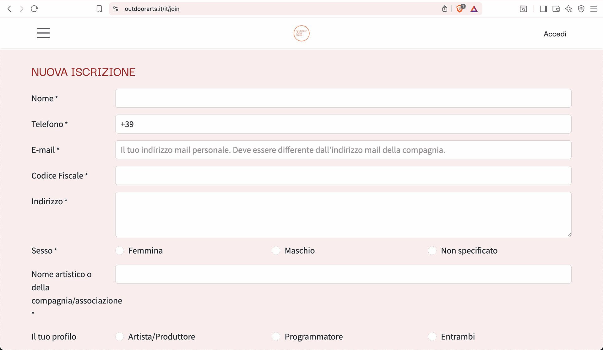 Per garantire la sicurezza e la qualità della nostra community, la registrazione diretta non è più disponibile. L’accesso alla piattaforma avviene esclusivamente tramite invito o validazione da parte dello staff di Outdoor Arts Italia ETS.